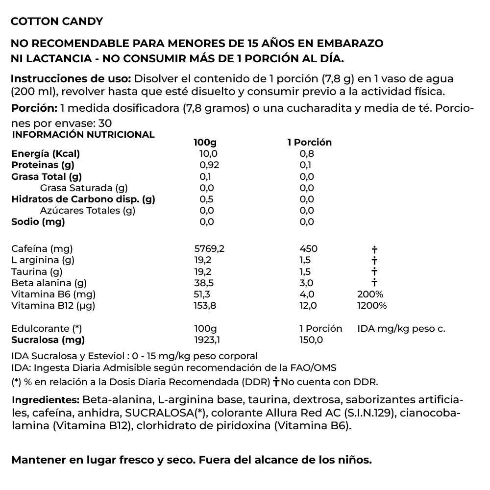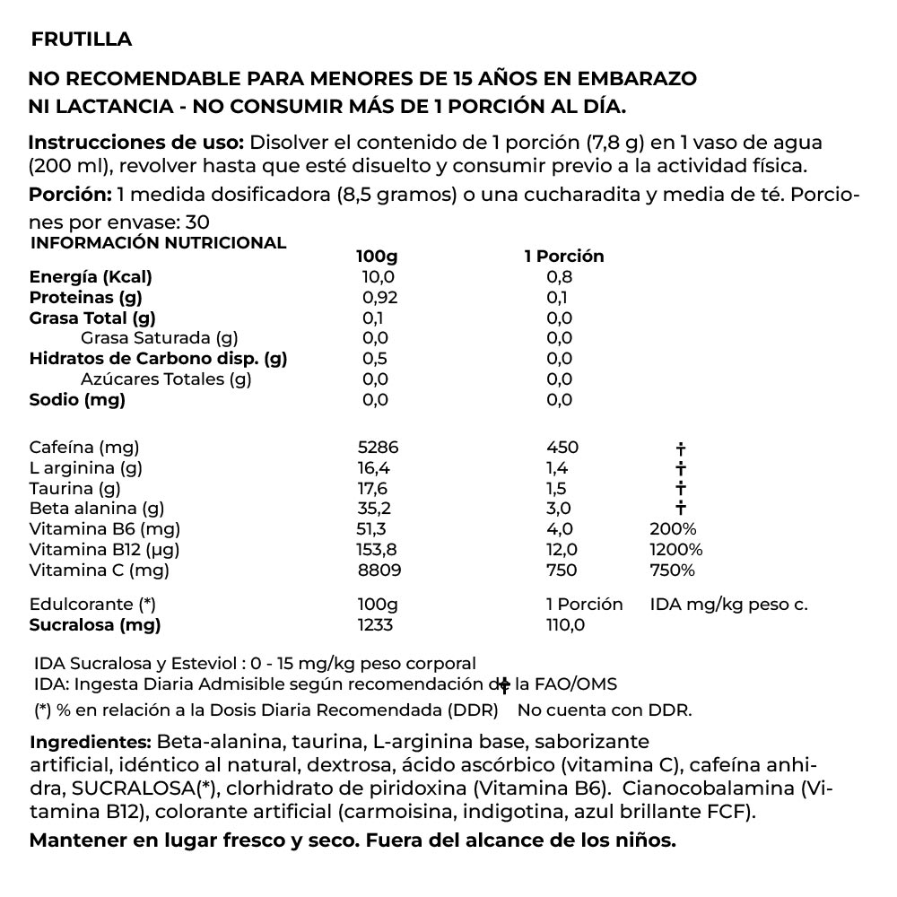 Brinda fuerza, resistencia y energía que ayuda a transformar tu entrenamiento para que puedas llegar a un nivel e intensidad que no creías posible. ¡Formulado con cafeína, beta alanina, taurina, L-arginina y vitaminas, todos estos ingredientes con respaldo científico te darán la energía, fuerza, enfoque, retrasando la fatiga para llegar al siguiente nivel!